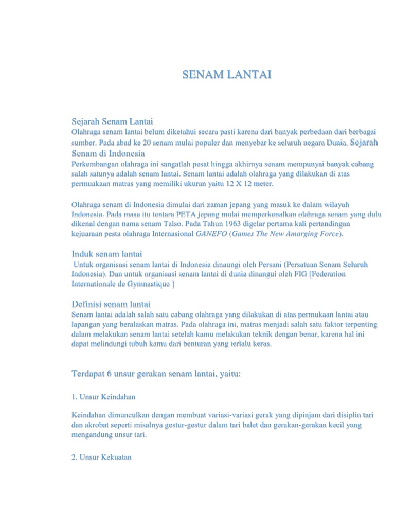Senam Lantai : Pengertian,Sejarah, Jenis, Manfaat dan Tehnik | dosenpintar