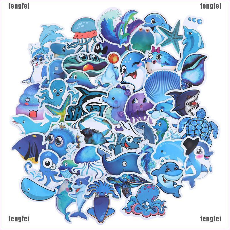 FF] 49Pcs Stiker Gambar Laut Laut Biru Lucu untuk Laptop / Koper / Skateboard | Shopee Indonesia