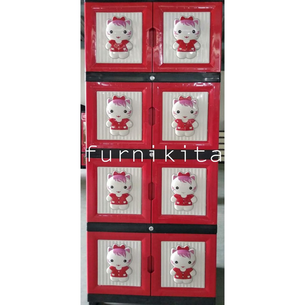 LEMARI PLASTIK SUSUN 4 KUNCI HELLO KITTY GAMBAR 3 DIMENSI di Lapak Furnikita_Furniture | Bukalapak