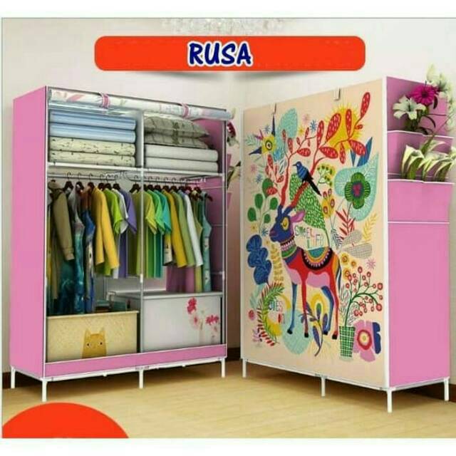 LEMARI BAJU RAK PAKAIAN GANTUNGAN KEMEJA 3D ANEKA GAMBAR WARNA LEMARI KOS PORTABLE BONGKAR PASANG | Shopee Indonesia