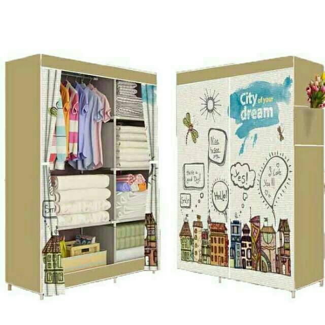Lemari Baju Pakaian Ukuran Besar Jumbo Motif Gambar Modern Rak Gantung Pakaian Portable Praktis ORI | Shopee Indonesia