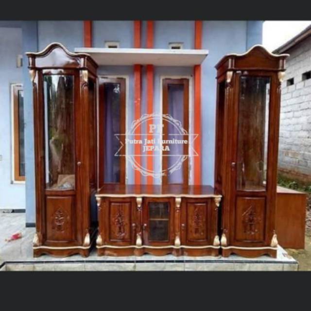 Lemari Hias Ruang Tamu Kayu Jati - Bufet Tempat Tv Ukir Jepara Gratis Ongkir | Shopee Indonesia
