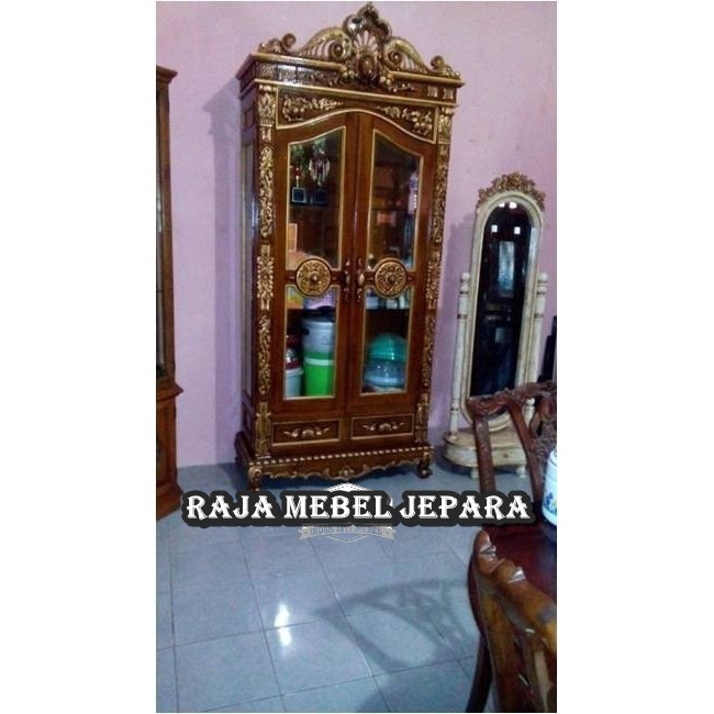 Lemari hias mewah pintu 2 model eropa, bahan kayu jati asli terbaik - Mebel - 799883115