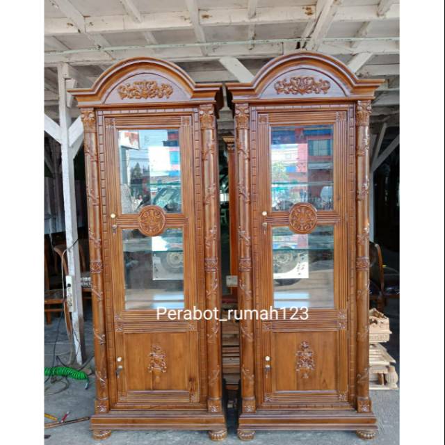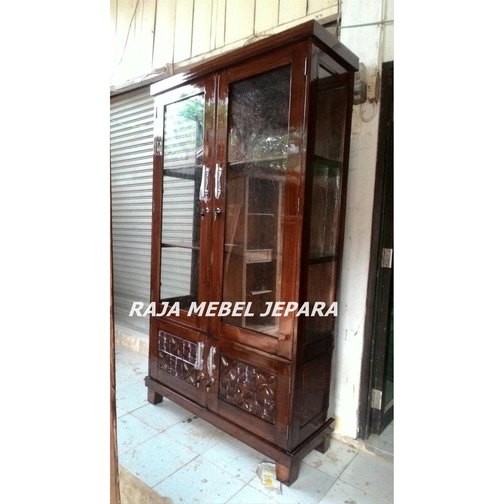 lemari hias kaca 2 pintu kayu jati jepara, furniture jepara | Shopee Indonesia