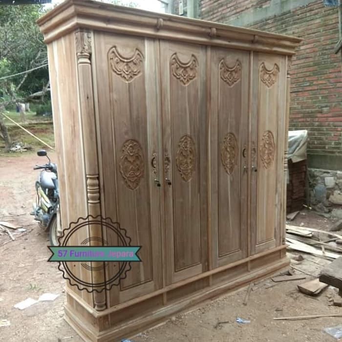 Lemari pakaian jati pintu 4 ukir Jepara - Almari besar mentahan | Shopee Indonesia