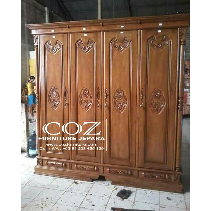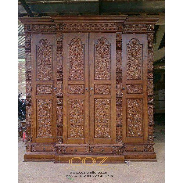 LEMARI PAKAIAN KAYU JATI UKIR JEPARA 4 PINTU | Kayu jati, Kayu, Lemari pakaian