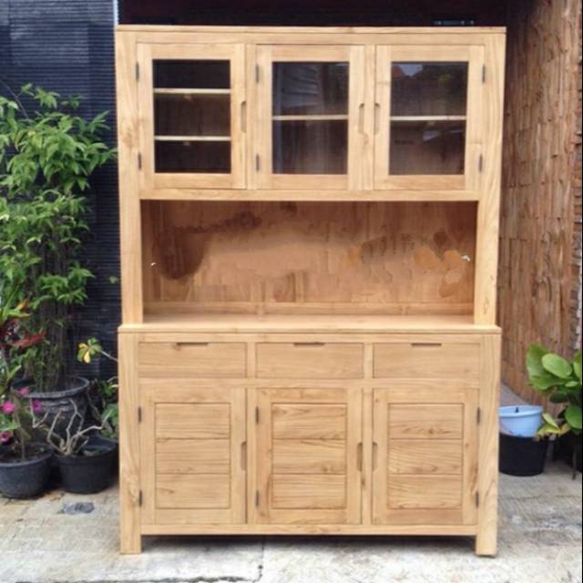 Lemari Dapur Kayu Jati Jepara Meja Rak Piring Minimalis Tempat Gelas Piring Serbaguna | Shopee Indonesia