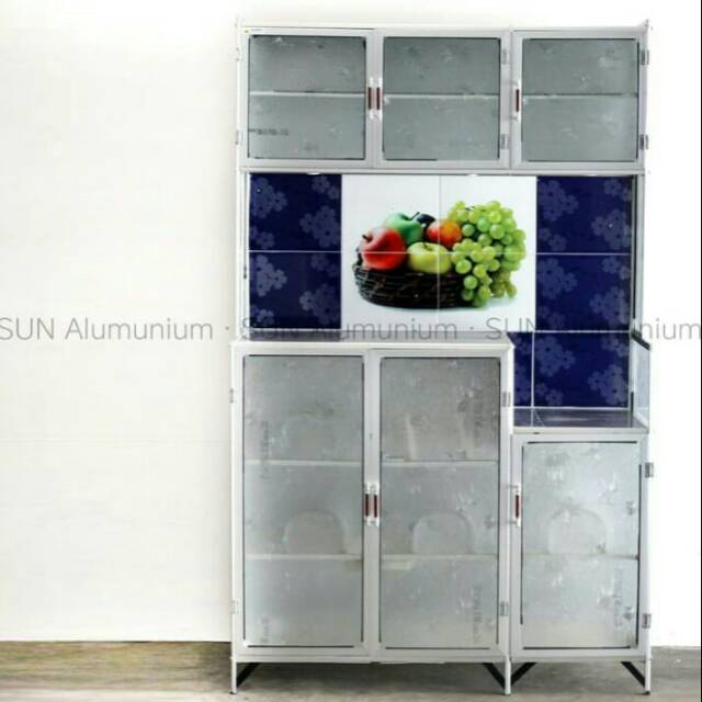 Rak Lemari Piring Kaca Aluminium Magic Com Non Roda 3 Pintu JABODETABE | Lazada Indonesia