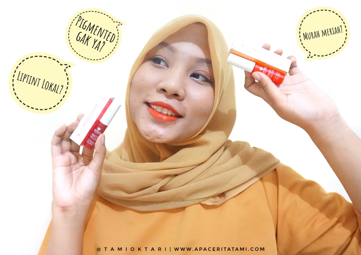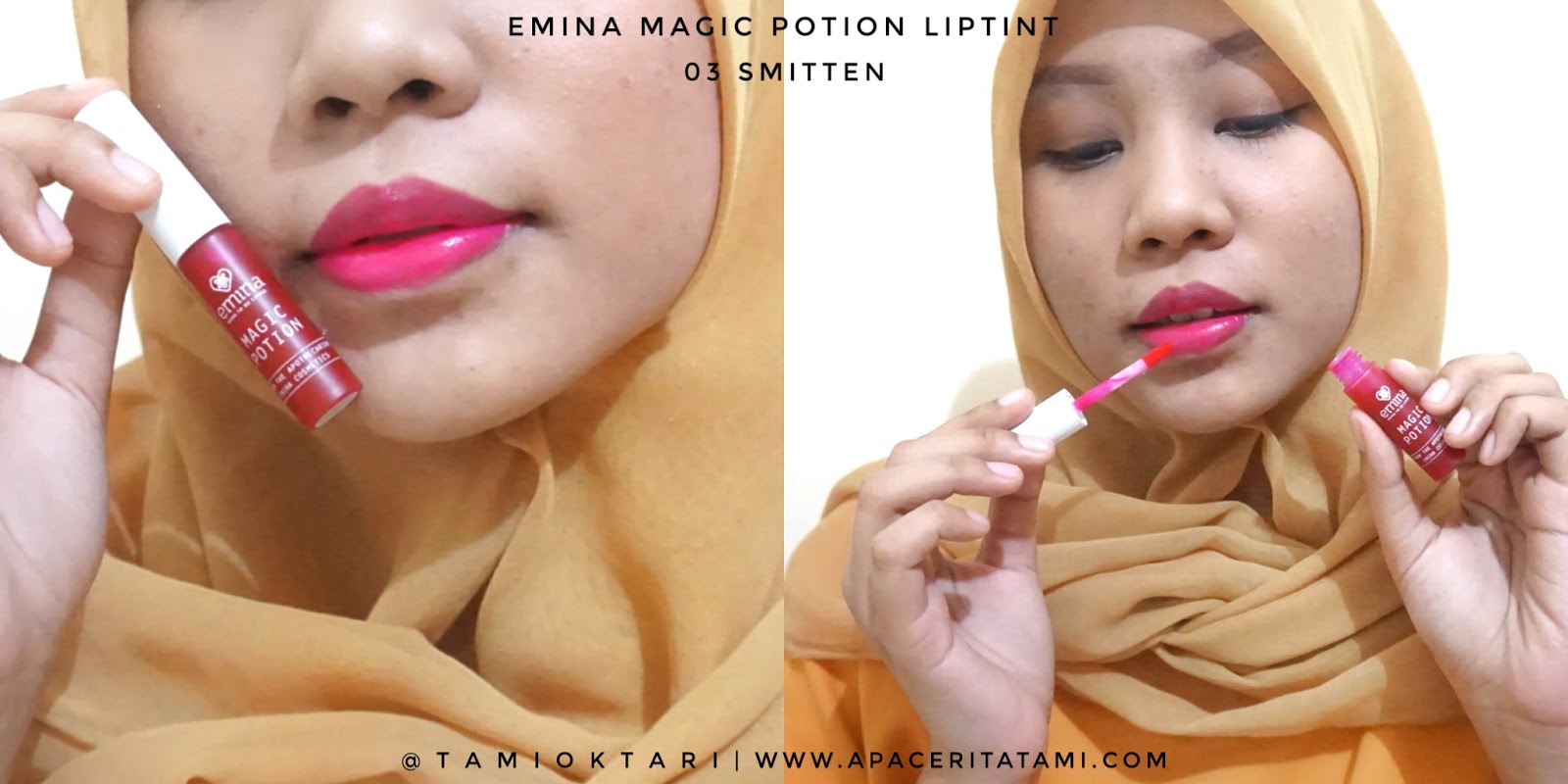 REVIEW & SWATCHES] Emina Magic Potion Liptint: 02 Sunglow - 03 Smitten - Blog by Tami Oktari