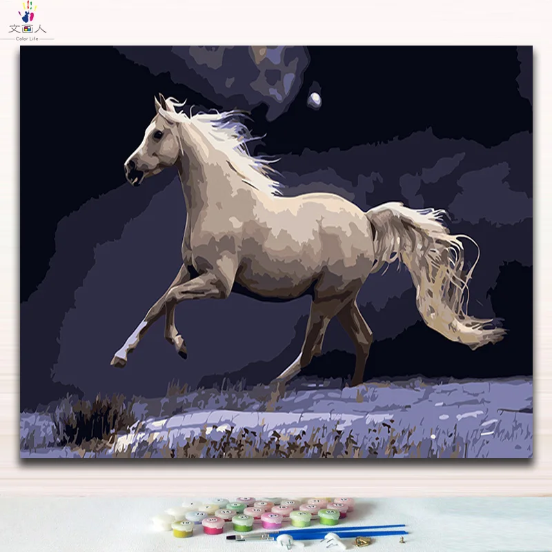 Mewarnai dengan Angka Berjalan Kuda Hitam Di Bawah Sinar Bulan Gambar Lukisan Menggambar Cat Oleh Nomor dengan Warna Cat|Cat Dengan Nomor| - AliExpress
