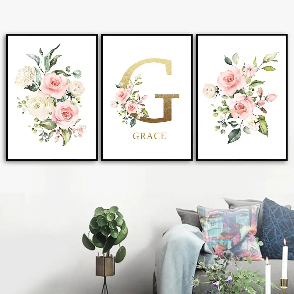 Rose Bunga Kanvas Lukisan Gadis Nama Kustom Dinding Seni Nordic Cetak Poster Pembibitan Lukisan Dinding Gambar Dekorasi Kamar Bayi| | - AliExpress