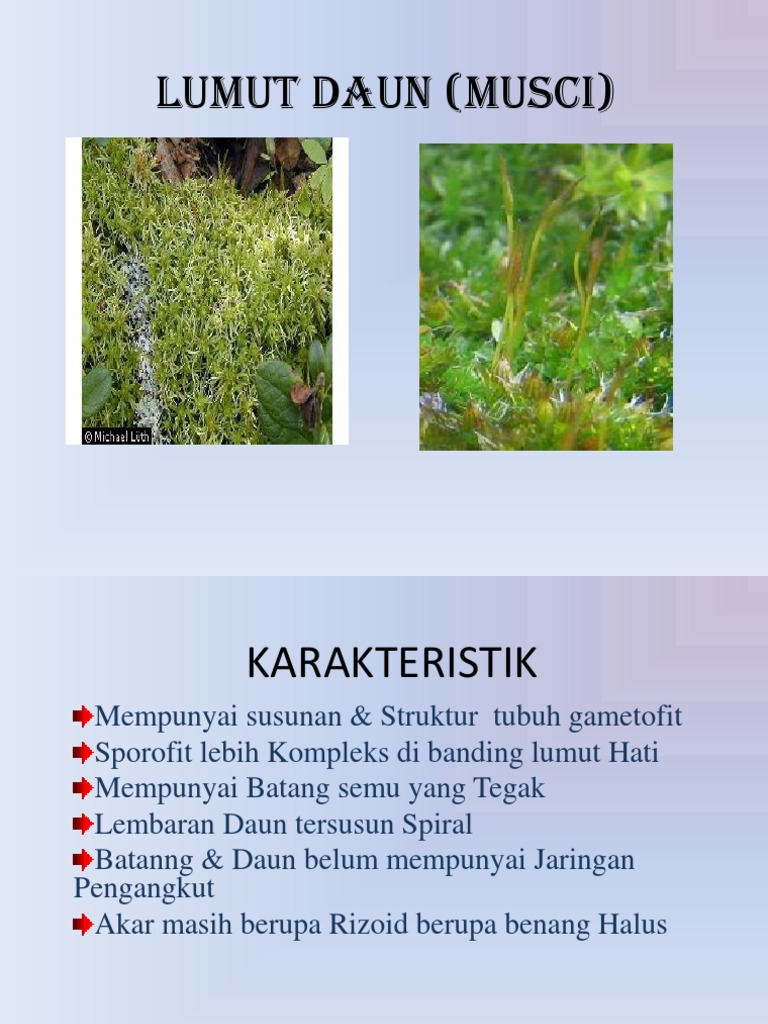 Anthocerotae (Lumut Tanduk) Musci (Lumut Daun) - ppt download