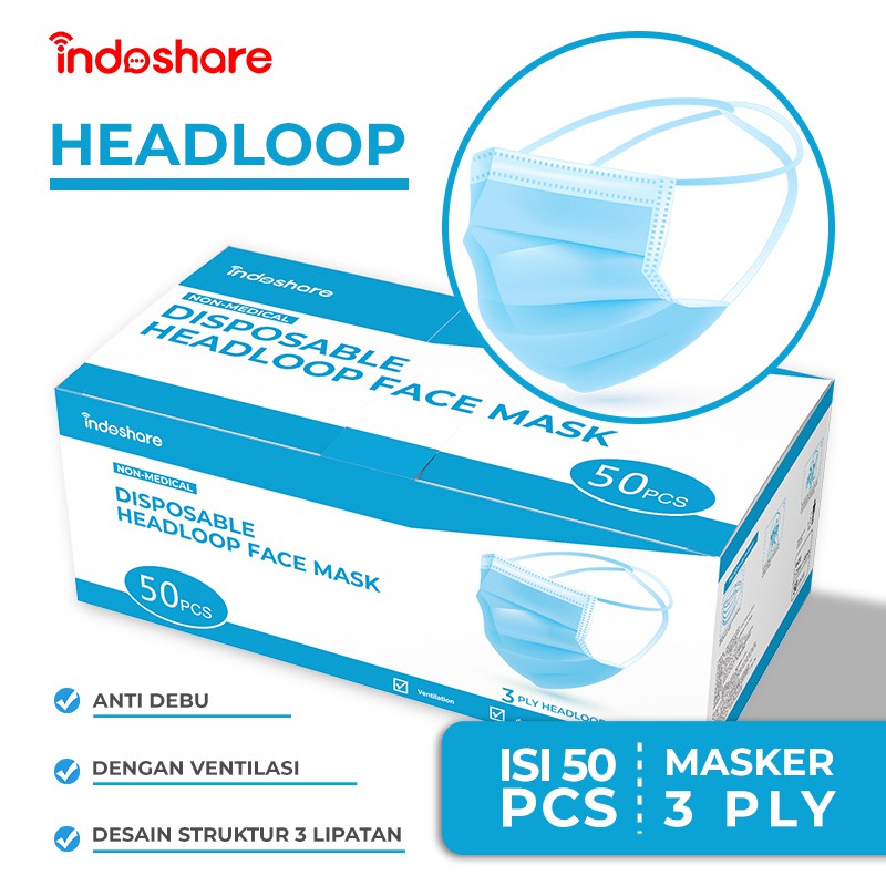 Masker Kesehatan Earloop 3ply & Masker Indoshare Headloop 3ply untuk Hijab Tali Silang isi 50pcs | Shopee Indonesia