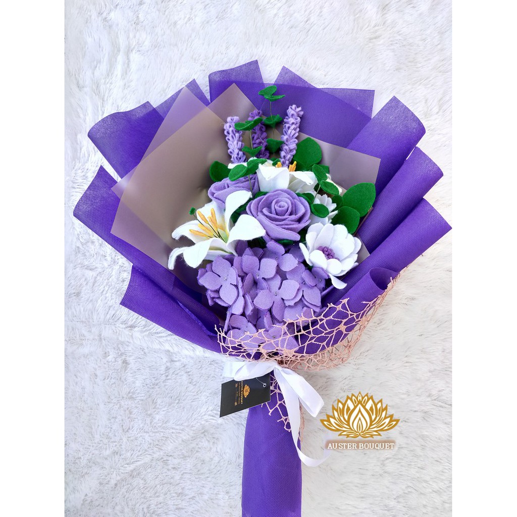AB 390 Hand Bouquet Buket Bunga Flanel Ungu mawar lili lavender hydrangea daisy Murah Cantik | Shopee Indonesia
