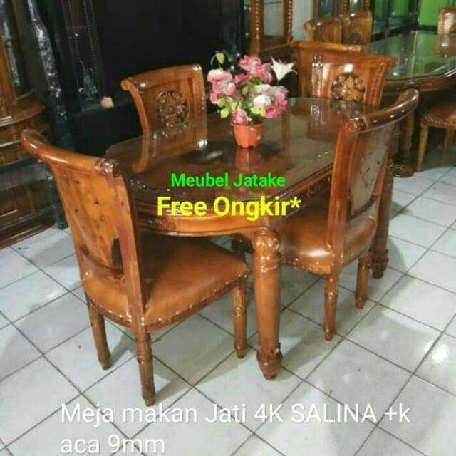 Meja Makan Jati Jepara SALINA 4 Kursi Jok - Cantik Mewah Unik no | Shopee Indonesia