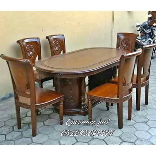 Jual Meja Makan Salina Gendong Kursi 6 Meja Makan Jati Jepara - Kab. Klaten - WibowoFurniture | Tokopedia