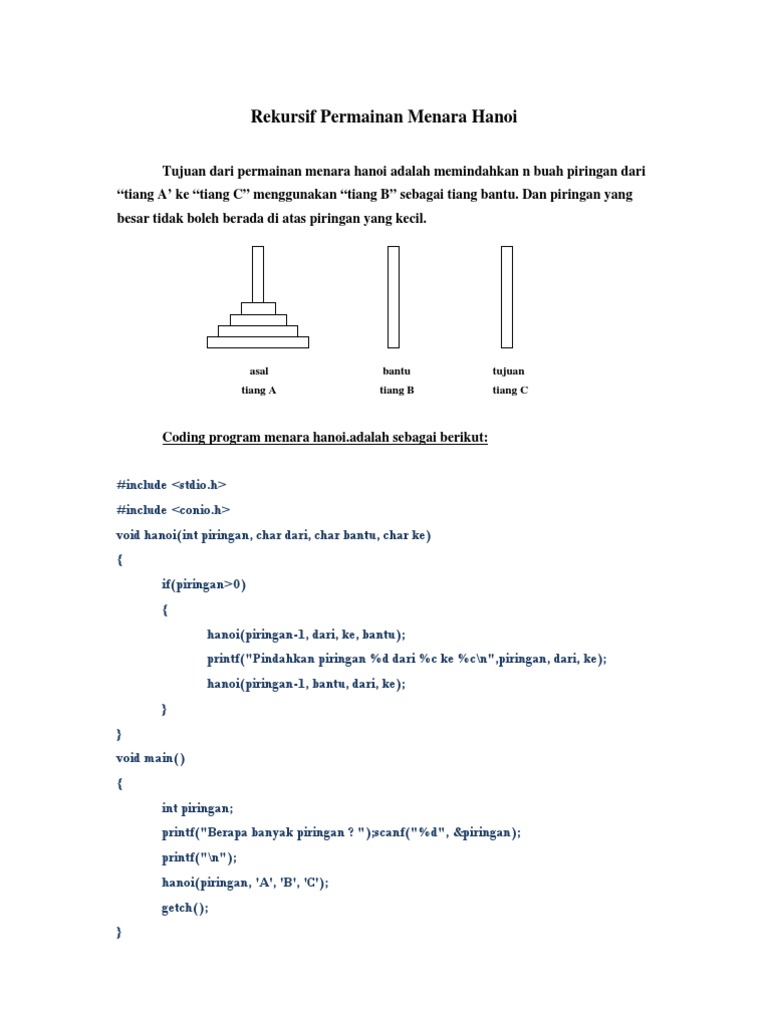Rekursif Permainan Menara Hanoi dengan Pemrograman C++ - [PDF Document]