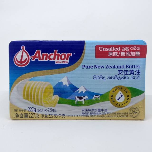 ANCHOR UNSALTED BUTTER 227GR - MENTEGA TAWAR - MENTEGA SAPI - PURE NEW ZEALAND UNSALTED BUTTER HALAL | Shopee Indonesia