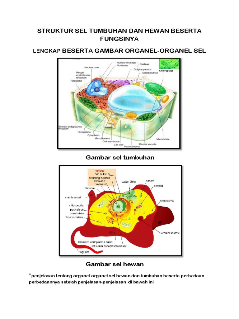 Struktur Sel Tumbuhan Dan Hewan Beserta Fungsinya Beserta Gambar Organel- Organel Sel