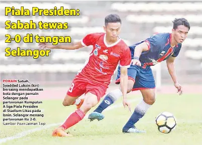 PressReader - Utusan Borneo (Sabah): 2018-07-24 - Piala Presiden: Sabah tewas 2-0 di tangan Selangor