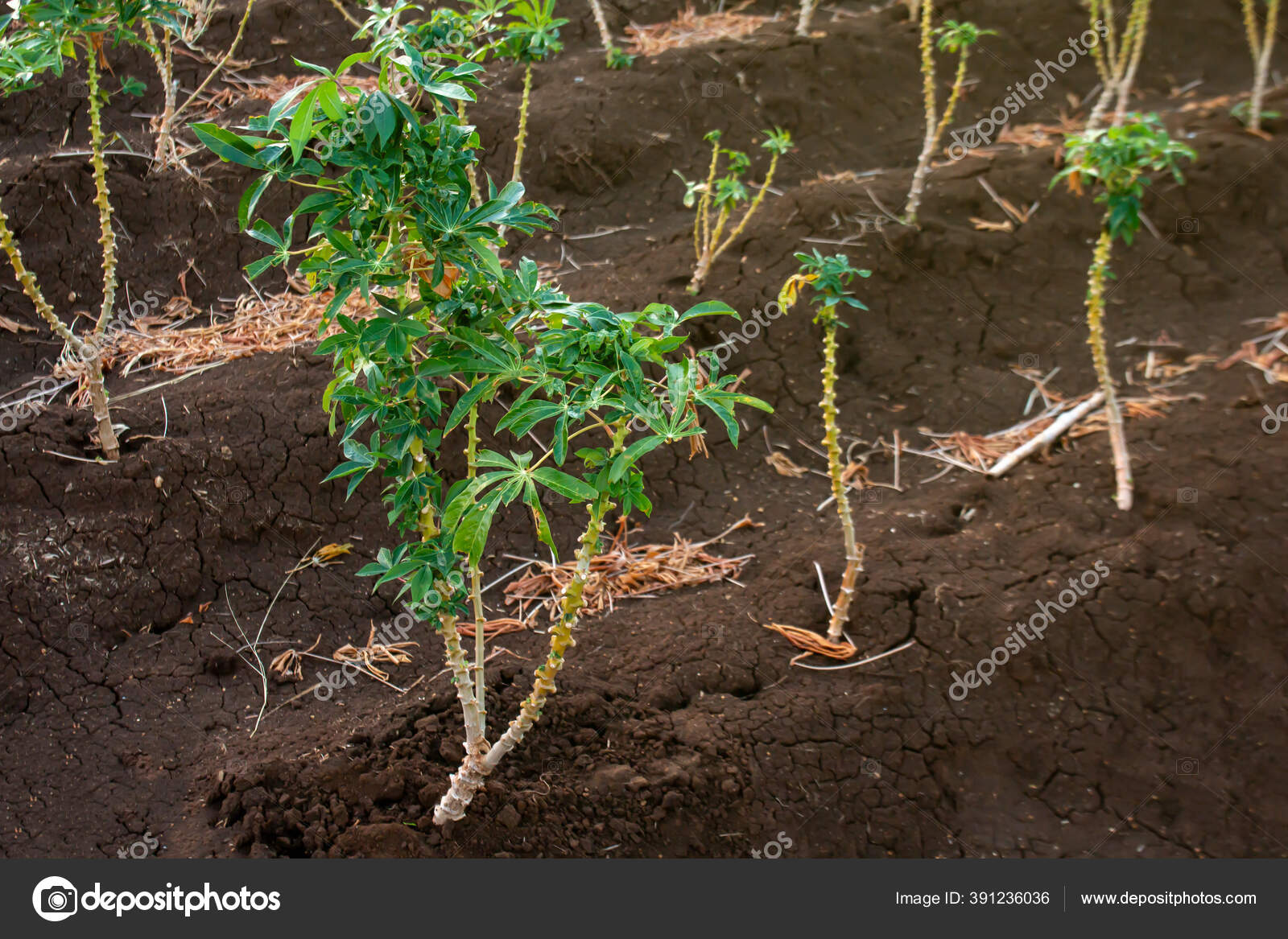 Pertumbuhan Pohon Singkong Dalam Penanaman Manioc Atau Ladang Tapioka Tanah Stok Foto © cgdeaw #391236036