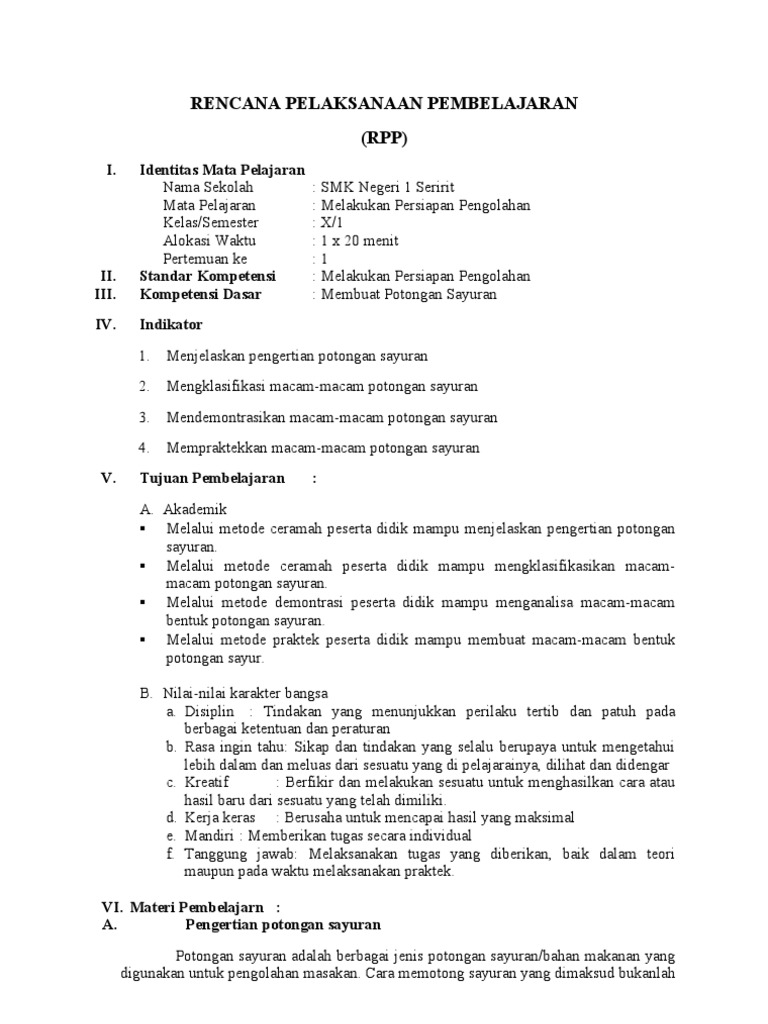 Rpp Jenis-jenis Potongan Sayur (Dasar Boga)