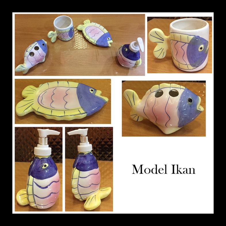 HARGA HEBOH SET KERAMIK TEMPAT SABUN BATANG, CAIR, GELAS, SIKAT GIGI GAMBAR LUCU - IKAN OP175 | Shopee Indonesia