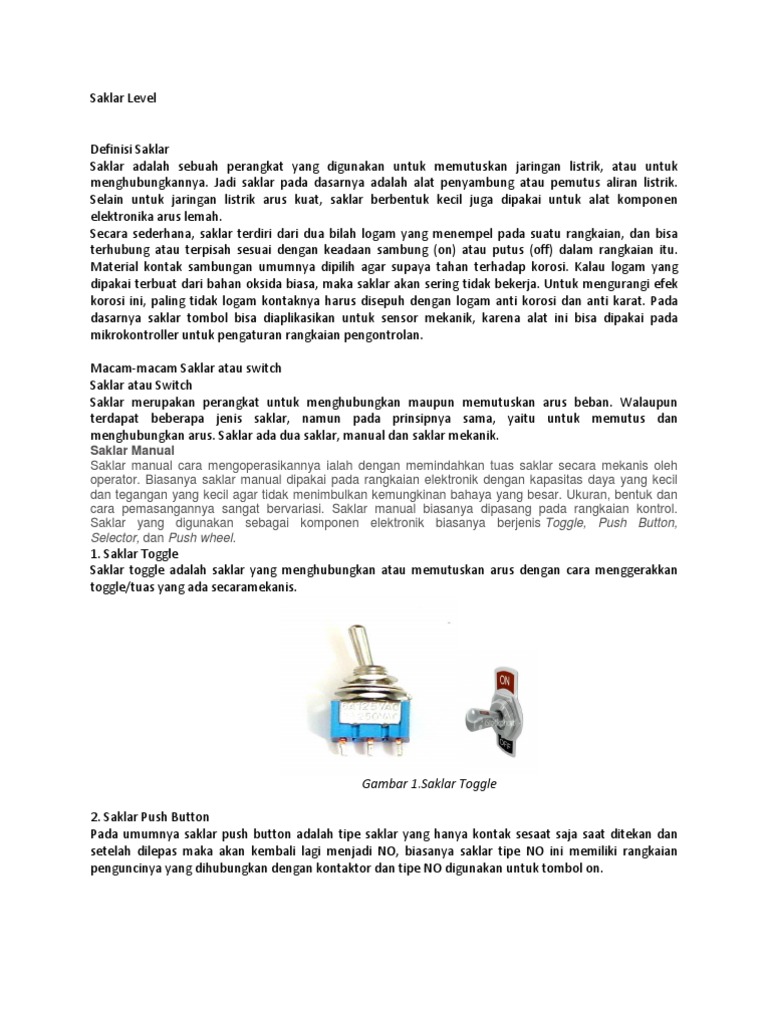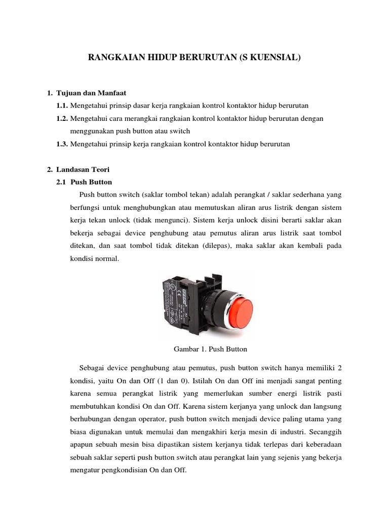 BAB II TINJAUAN PUSTAKA 2.1 Push Button Saklar merupakan