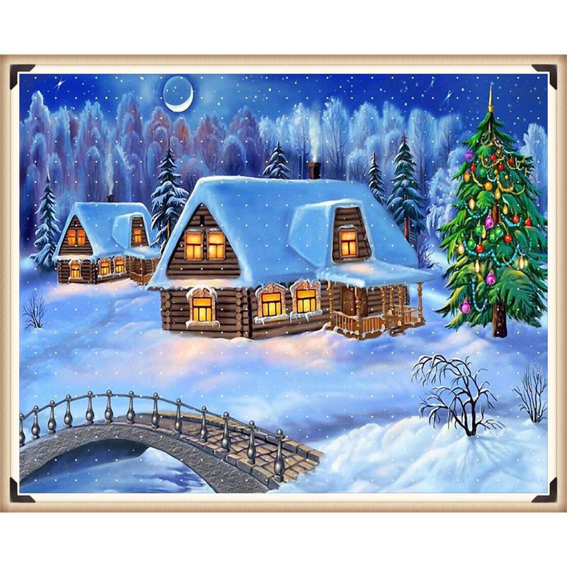 DIY Lukisan Diamond 5D dengan Gambar Pemandangan Rumah Dan Salju untuk Hiasan Dekorasi Rumah | Shopee Indonesia