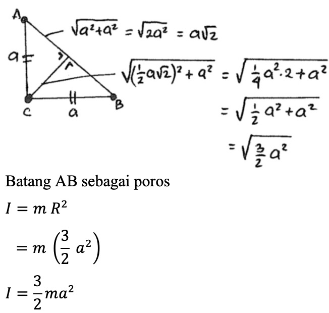 Tiga partikel identik diikat ke ujung-ujung sebuah segitiga siku-siku sama kaki - Mas Dayat