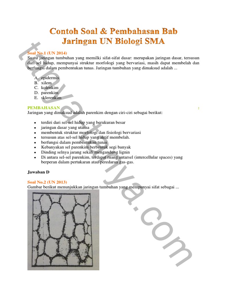 Contoh Soal Struktur dan Fungsi Jaringan Tumbuhan | idschool