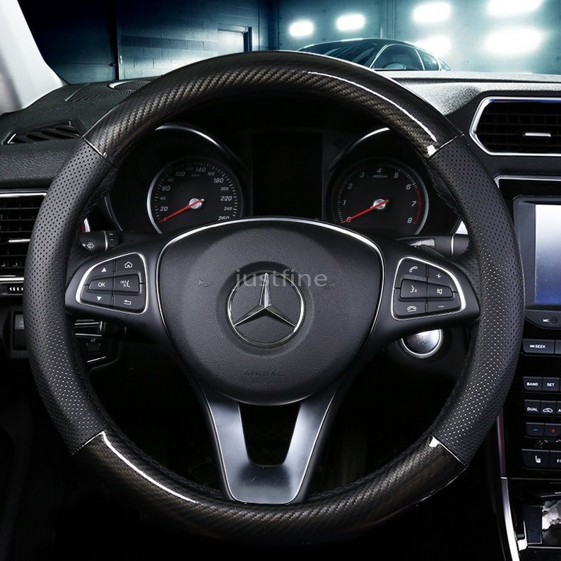 for Mercedes Benz Sarung Setir Mobil Cover Stir Mobil Kulit Asli Hitam Kombinasi Carbon 38cm M size | Shopee Indonesia
