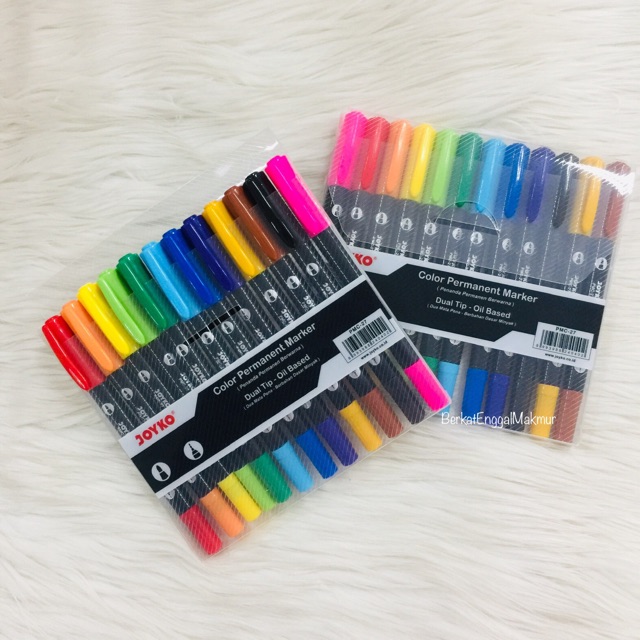 Spidol 12 Warna Permanent Marker Joyko PMC-27 Dual Tip | Shopee Indonesia