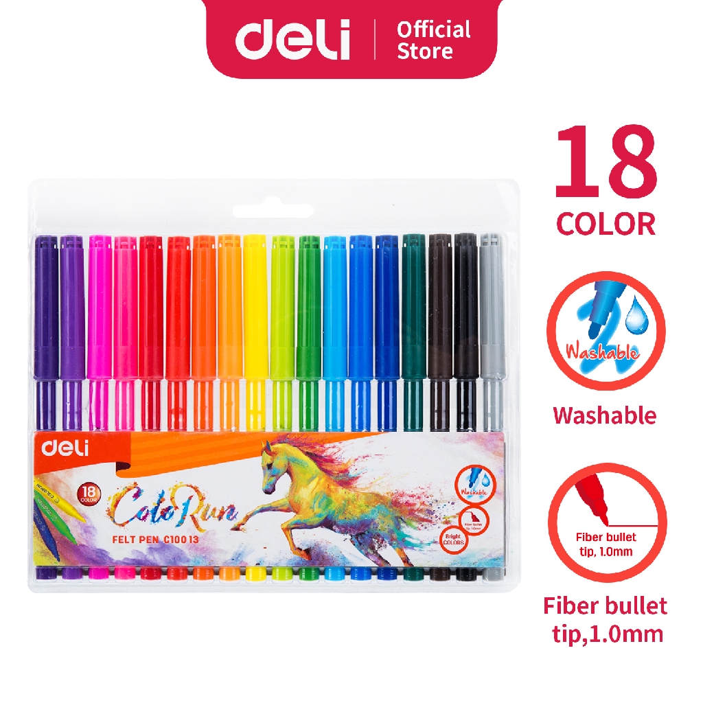 Deli Spidol Warna - Felt Pen dapat dicuci 1.0mm 12/18/24 Warna EC10013 | Shopee Indonesia