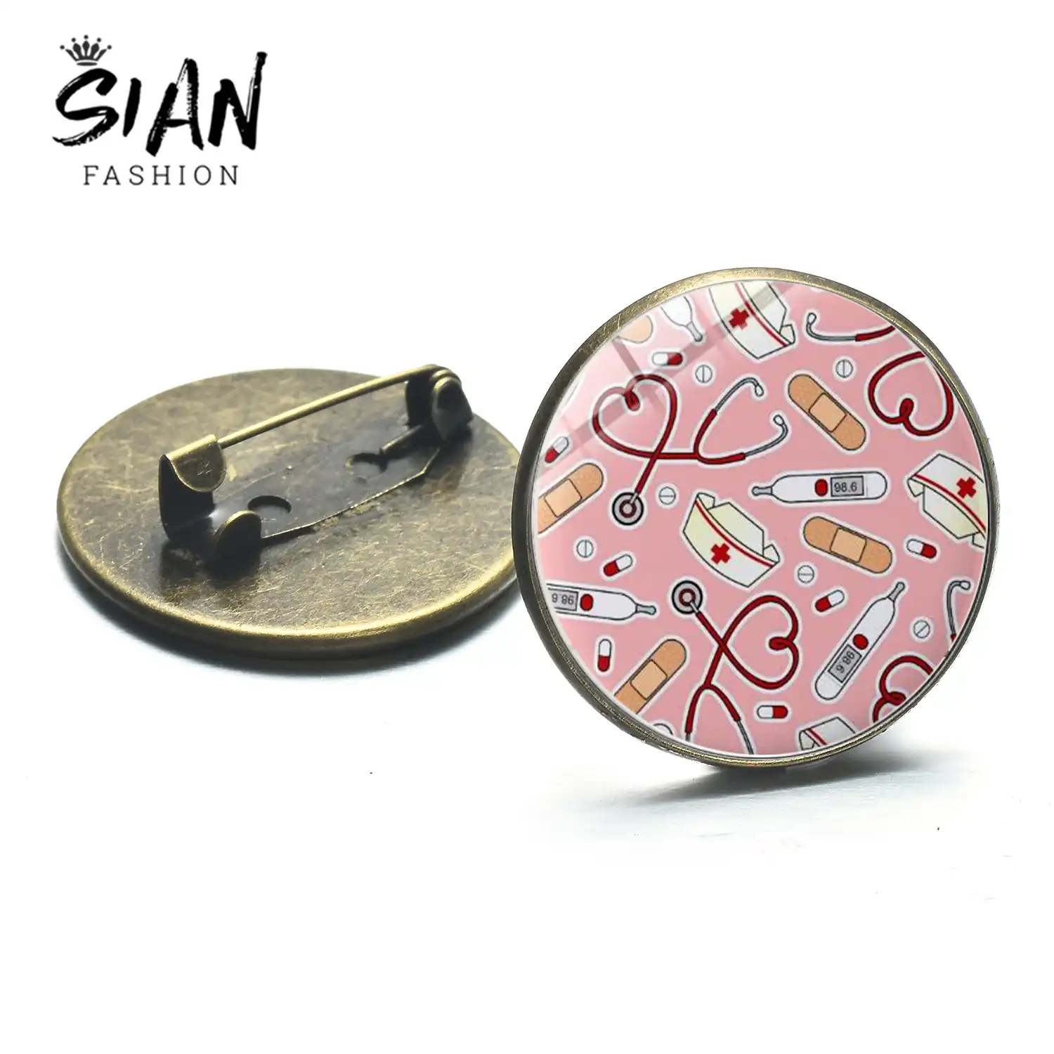 Sian Pink Foto Stetoskop Jarum Suntik Bros Aku Perawat & Dokter Alat Medis Peace Love Kaca Cabochon Bros Pakaian pin - AliExpress