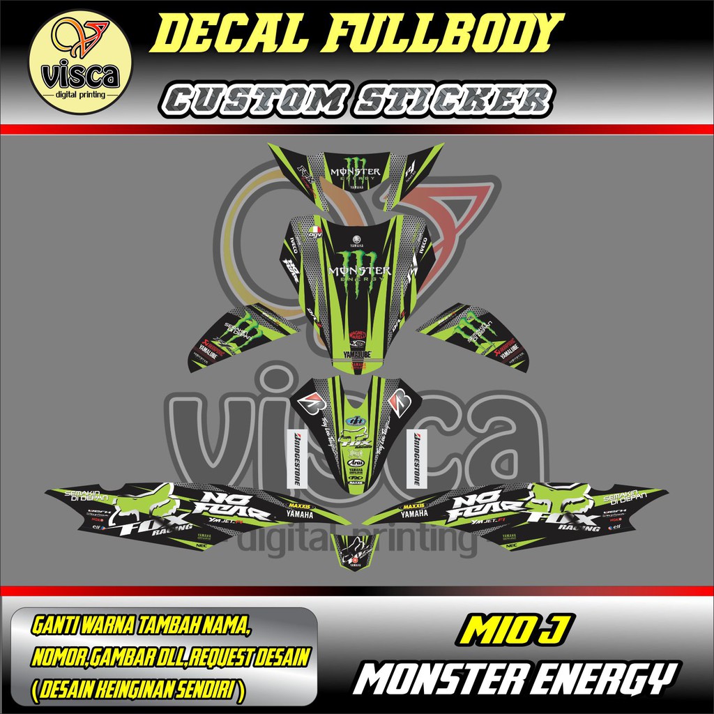 STIKER VARIASI MOTOR MIO J DECAL STRIPING FULL BODY MIO J MONSTER ENERGY | Shopee Indonesia