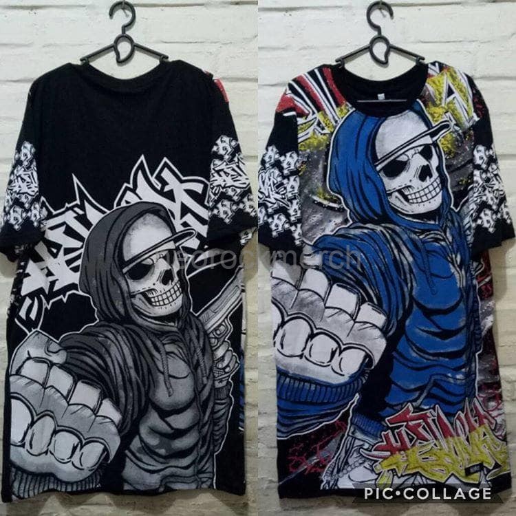 BAJU KAOS DISTRO HOMIES MOTIF TENGKORAK WARNA PUTIH FULL PRINT GRAFF di Lapak neoshirt | Bukalapak