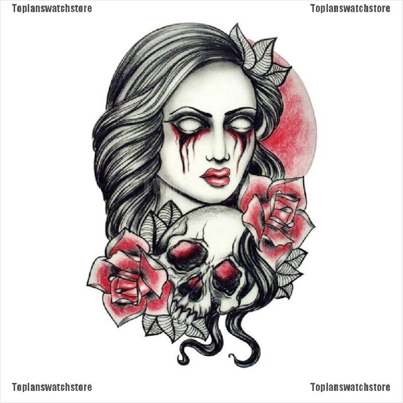 Stiker Tato Temporer Gambar Tengkorak + Bunga 3D Anti Air Removable untuk Pria / Wanita | Shopee Indonesia