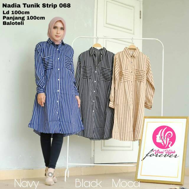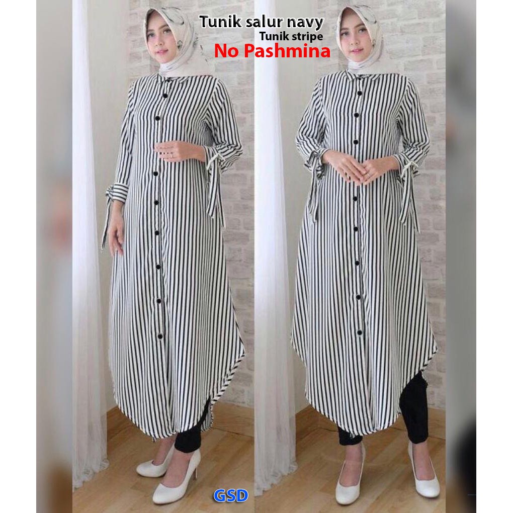 Nadia Tunik Strip // LD 100 cm Panjang 100 cm // Balloteli // Hijab // Fashion wanita | Shopee Indonesia