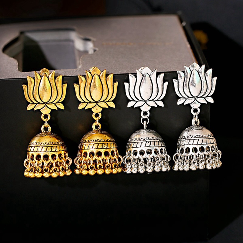 1 Pasang Anting Tusuk Gantung Desain Ukiran Bunga Teratai Warna Gold Gaya Vintage/Indian/Boho/Etnik Untuk Wanita | Shopee Indonesia