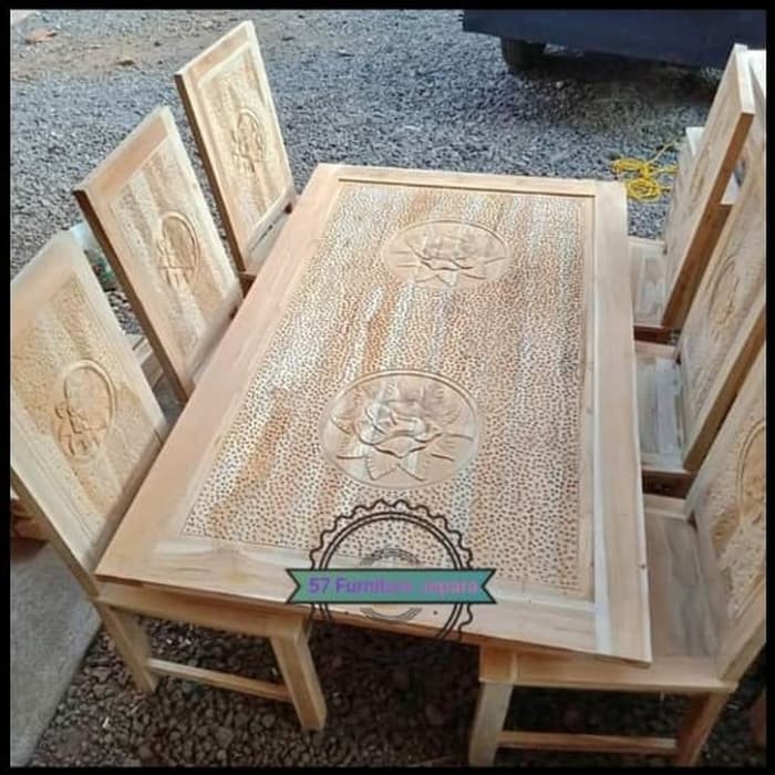 Meja & 6 kursi makan jati mentahan motif ukir sederhana | Shopee Indonesia