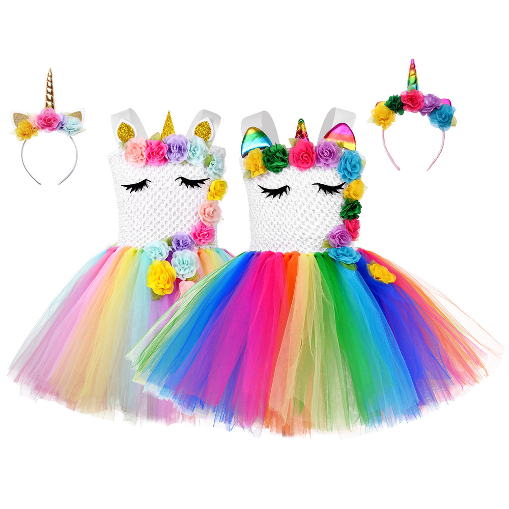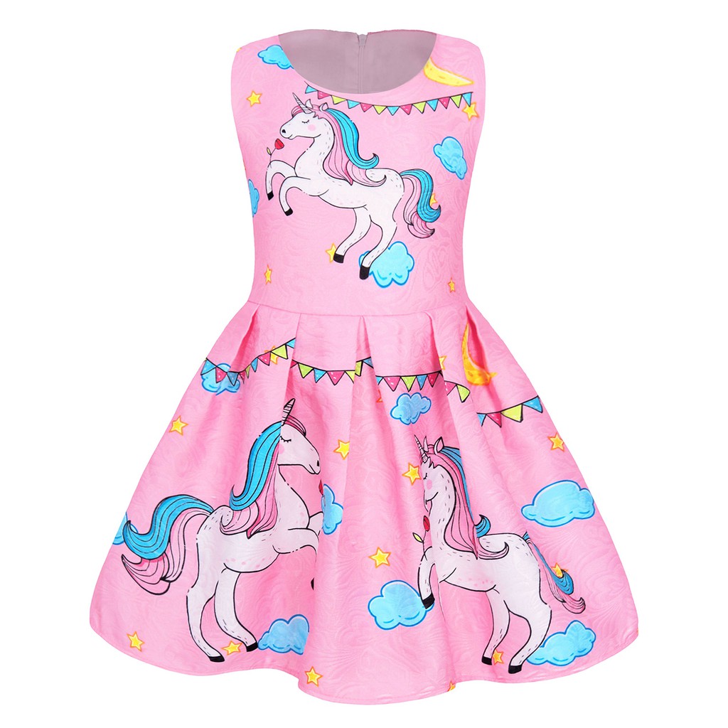 Dress Princess Anak Perempuan Tanpa Lengan Gambar Unicorn Warna Pelangi | Shopee Indonesia