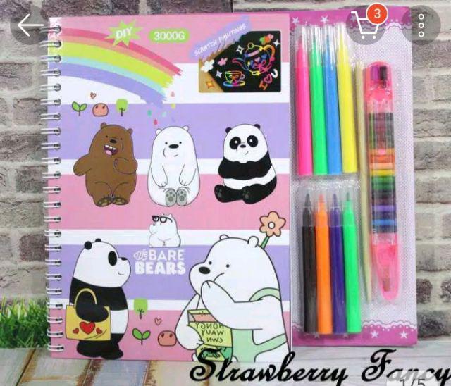 Activity Book Anak DIY Buku Mewarnai Coloring Book Scratching Drawing Menggambar 3in1 Bare Bears | Lazada Indonesia