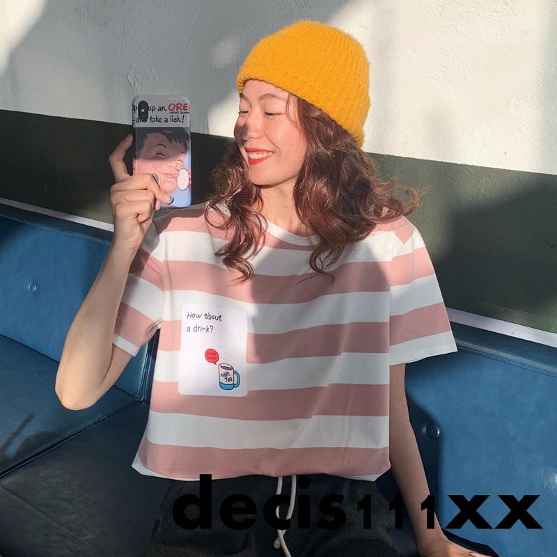 Decis 111 Xx Shop Kaos T-shirt Wanita Lengan Pendek Dengan Motif Garis-garis Dan Gambar Motif 111 | Shopee Indonesia