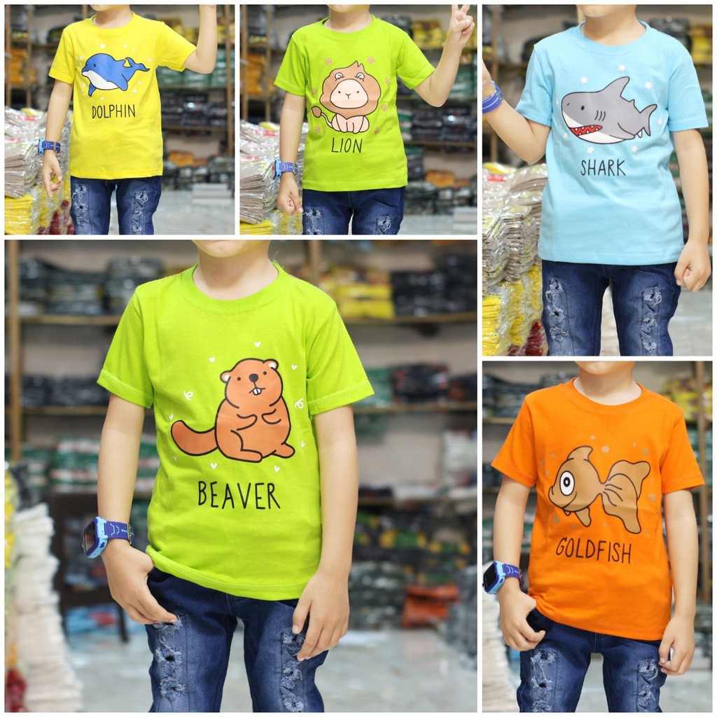 Baju kaos anak cowok pria laki laki gambar kartun binatang lucu korea bintang CAMPUR | Shopee Indonesia