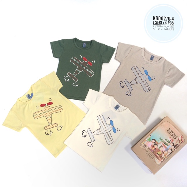 KBD 0270 -4 baju kaos anak cowo sablon gambar kartun pesawat terbang warna hijau abu kuning krem | Shopee Indonesia