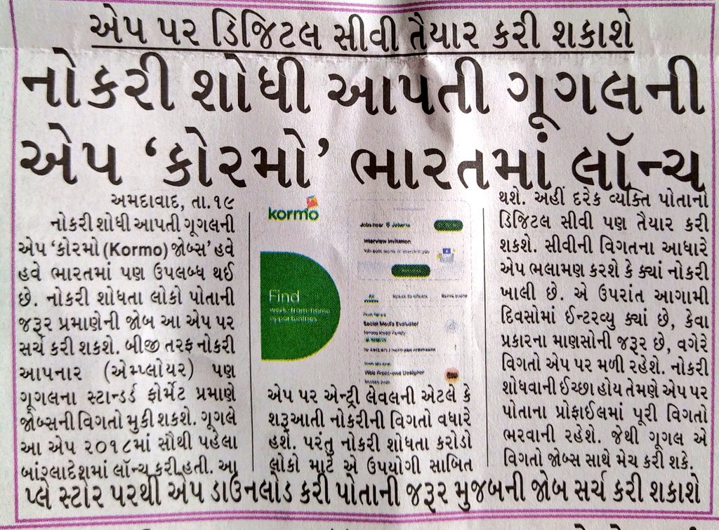 Lalit B. Khambhayta on Twitter: “Google ‘kormo jobs’ app to find the jobs. #google #kormo #jobseeker #jobs #app #CV #Digital #employers @GoogleIndia… https://t.co/Mb1pOE9qgw”