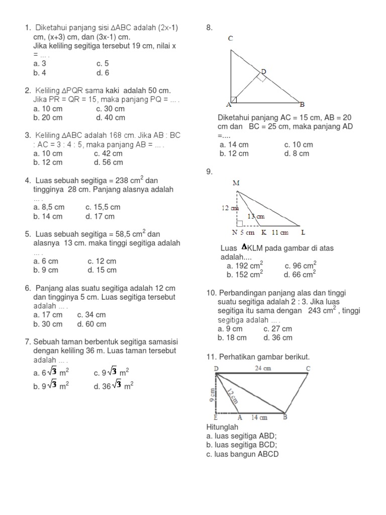Soalmatematikasmpkelas8lingkarandansegitiga