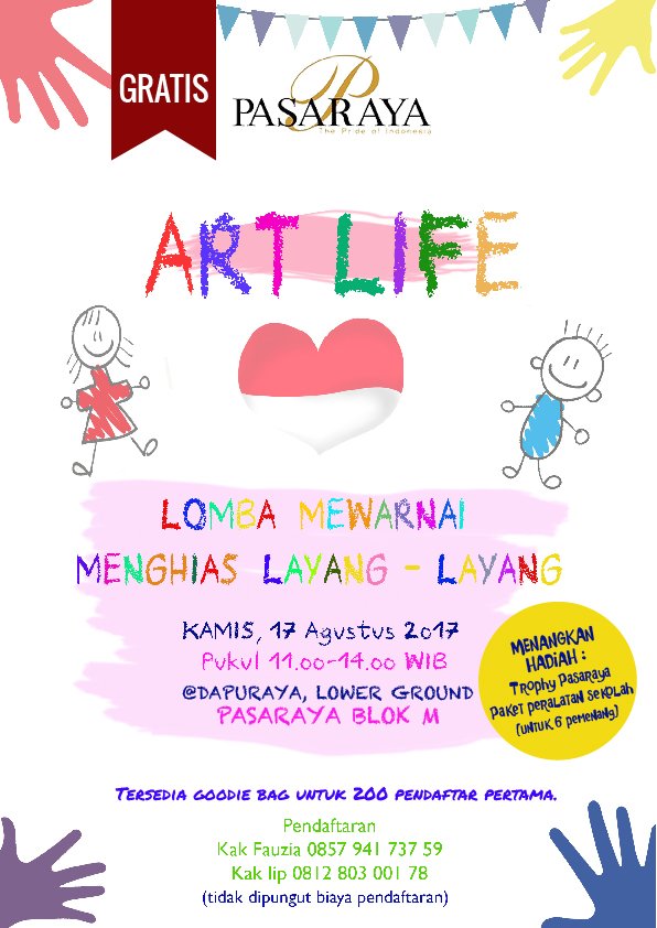 PASARAYA BLOK M ar Twitter: Yuk ikuti lomba mewarnai, menghias layang-layang 17 Agustus 2017 di Dapuraya Pasaraya!