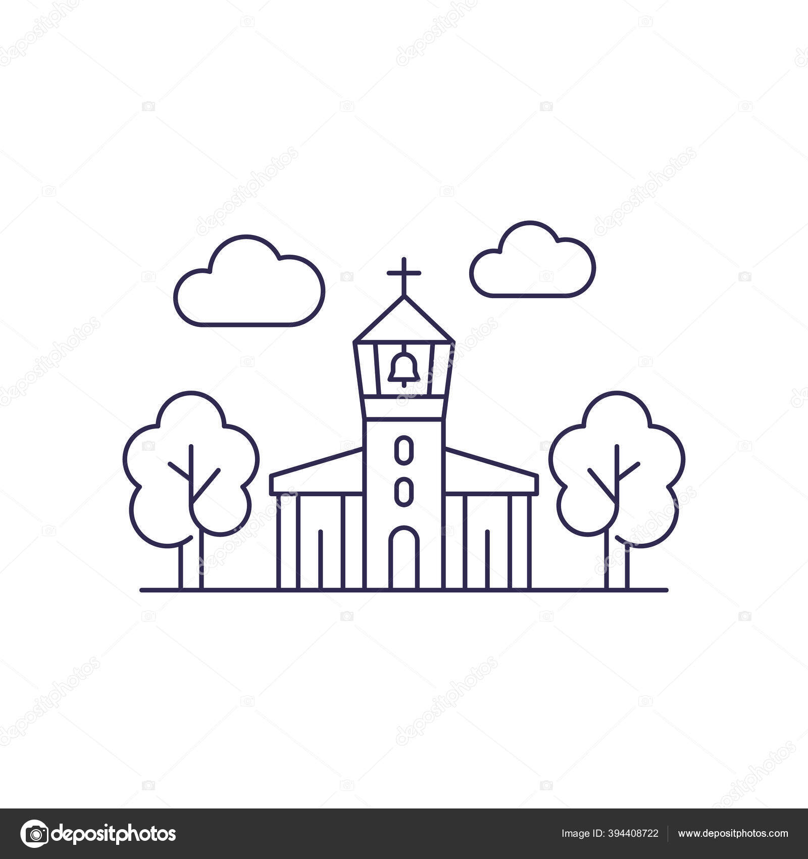 Gereja dengan belfry, vector line art Stok Vektor © nexusby #394408722